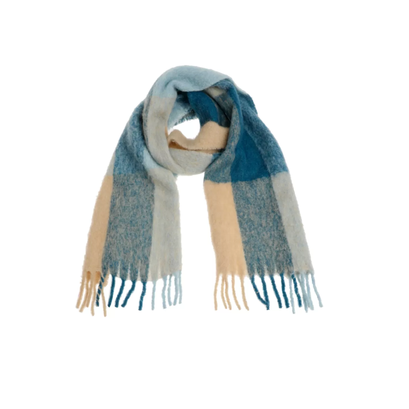 Écharpe d’hiver en mélange de laines Couleurs contrastées Longue écharpe à franges Chaude et douce au toucher